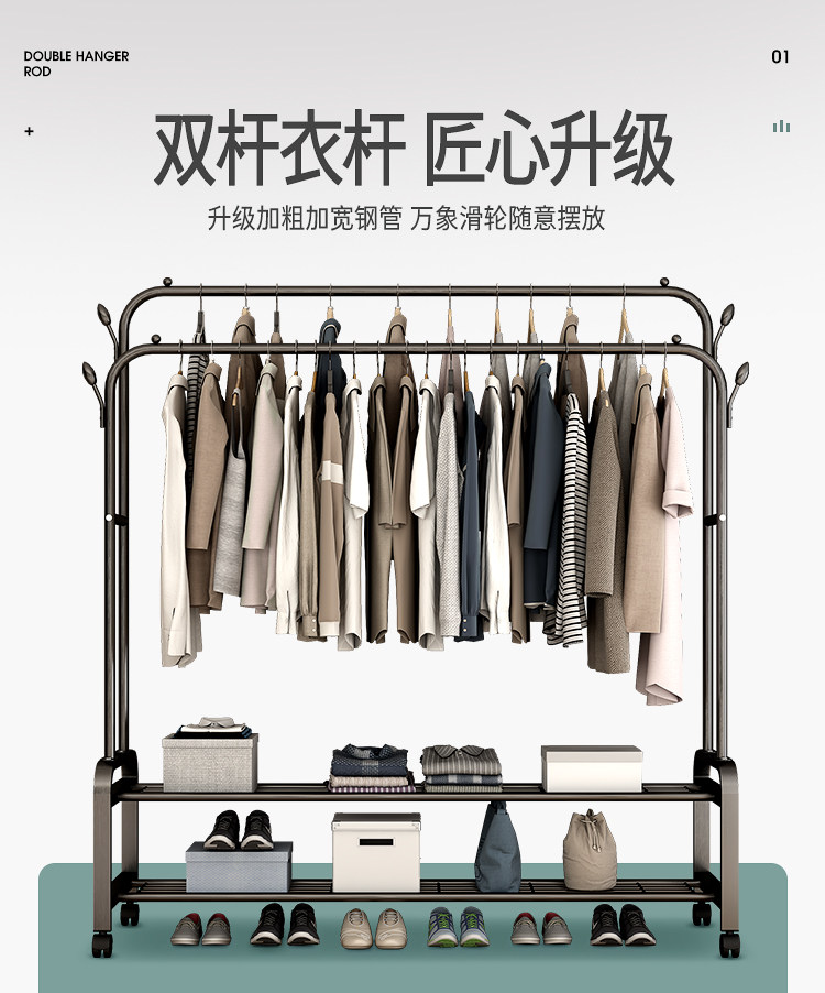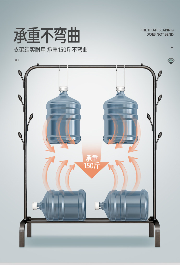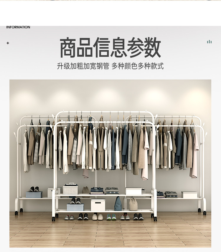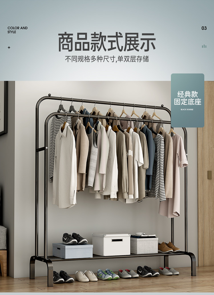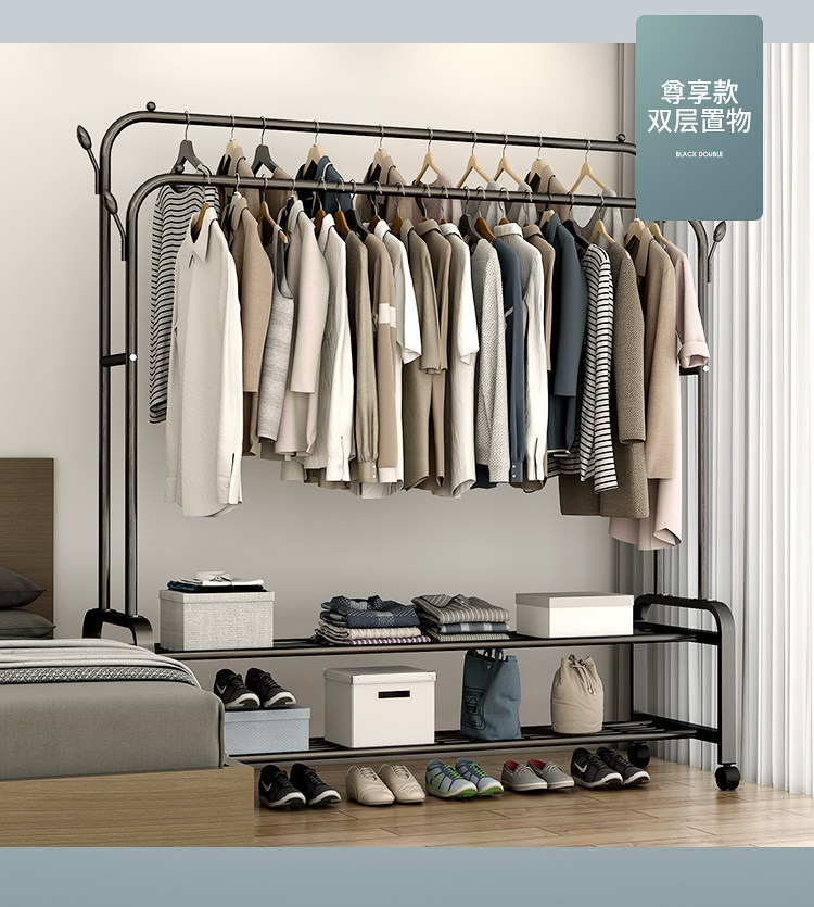 Double pole clothes hanger, simple floor to floor bedroom, internet red household clothes rack