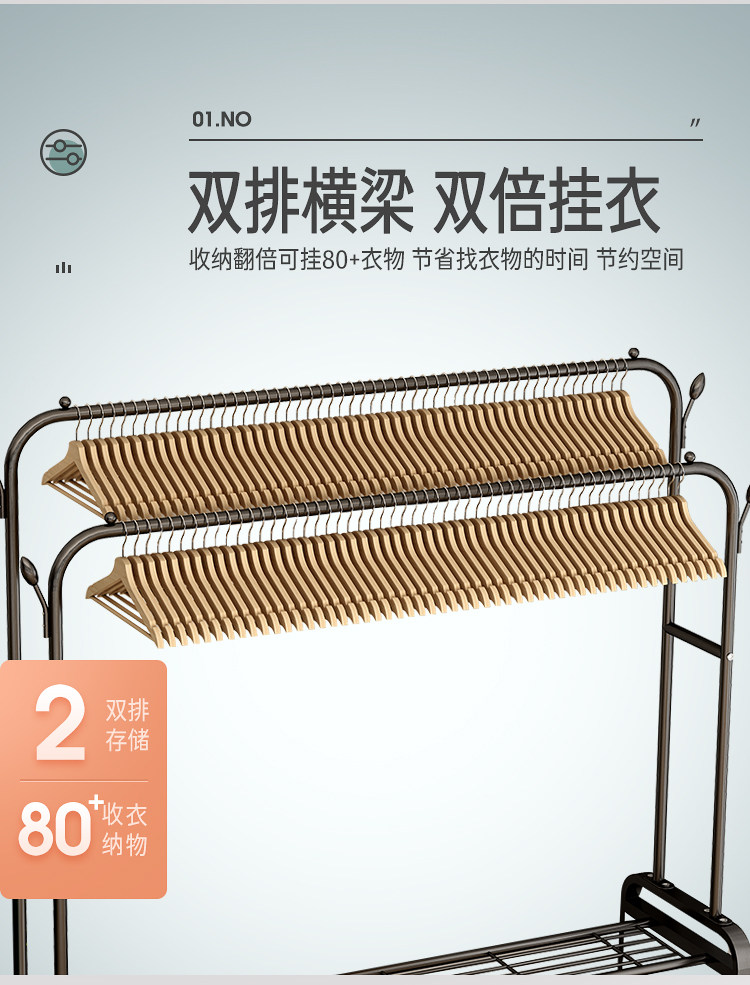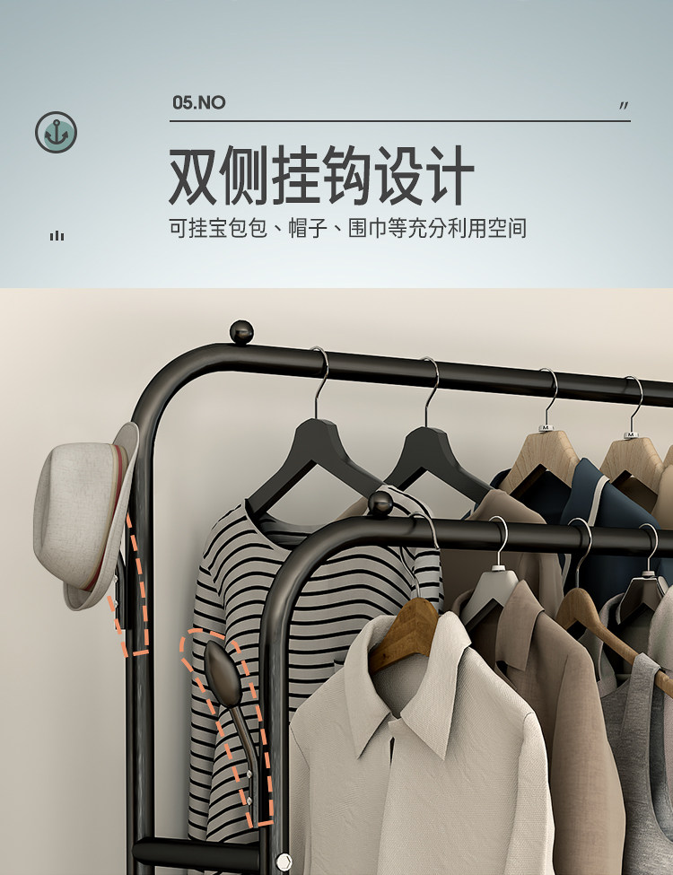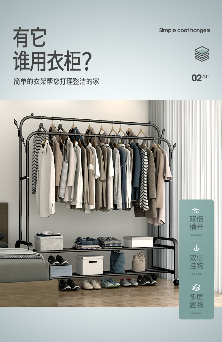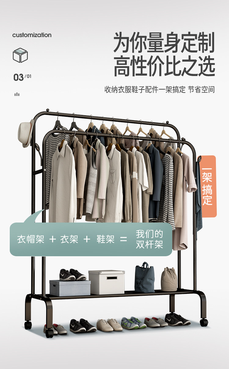 Double pole clothes hanger, simple floor to floor bedroom, internet red household clothes rack