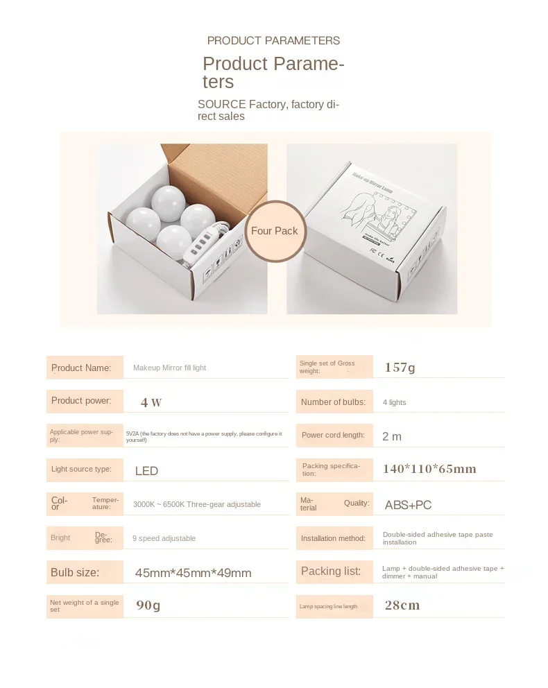 5) Uniform Lighting, Eye Protection Design, Usb Plug, Paste Base, Two Meters Of Wire.