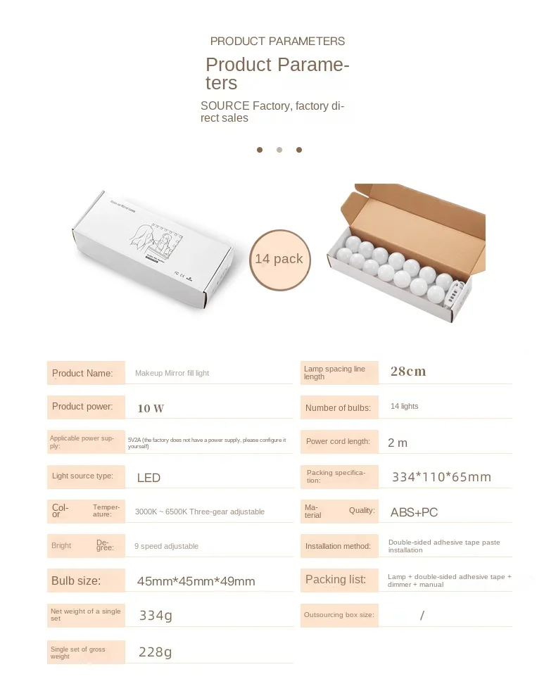Vanity Mirror Fill Light Adjustable Luminance 3 Colors LED USB Wall Bulbs String For All Pretty 3 Colors Dimmable Light